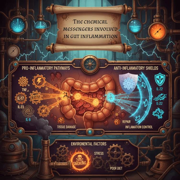 Cytokines are tiny chemical messengers your immune system uses to send signals. In inflammatory bowel disease (IBD), these messengers help control how much and how long your gut gets inflamed. If these chemicals get out of balance, your gut inflammation can get worse[19].