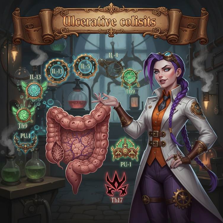 Other chemicals, like IL-4, IL-5, and IL-9, are also raised and are linked to certain immune cells called Th2 and Th9 cells [5], [35]. There’s also a protein called PU.1 that helps cells talk to each other, and IL-9 from Th9 cells can slow down gut lining repair and make the barrier between cells weaker, which lets bacteria get in and cause more inflammation [36]. Like Crohn’s disease, ulcerative colitis also has higher levels of inflammation-related chemicals from Th17 cells [26].